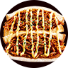 こだわり尽くしたオリジナルソース。U.F.O.のメインは、ソースといっても過言ではない。老舗以上にとことんこだわりぬいた、旨さ凝縮、ぶっ濃い濃厚ソース!ガーリック・オニオンをベースにした香り高きオイルや、シナモン・黒コショウなどの様々なスパイスと、リンゴ・パイナップルなどのフルーツを閉じ込めてじっくり煮詰め、ソースの一滴一滴にコクと旨みと香りを凝縮しました。